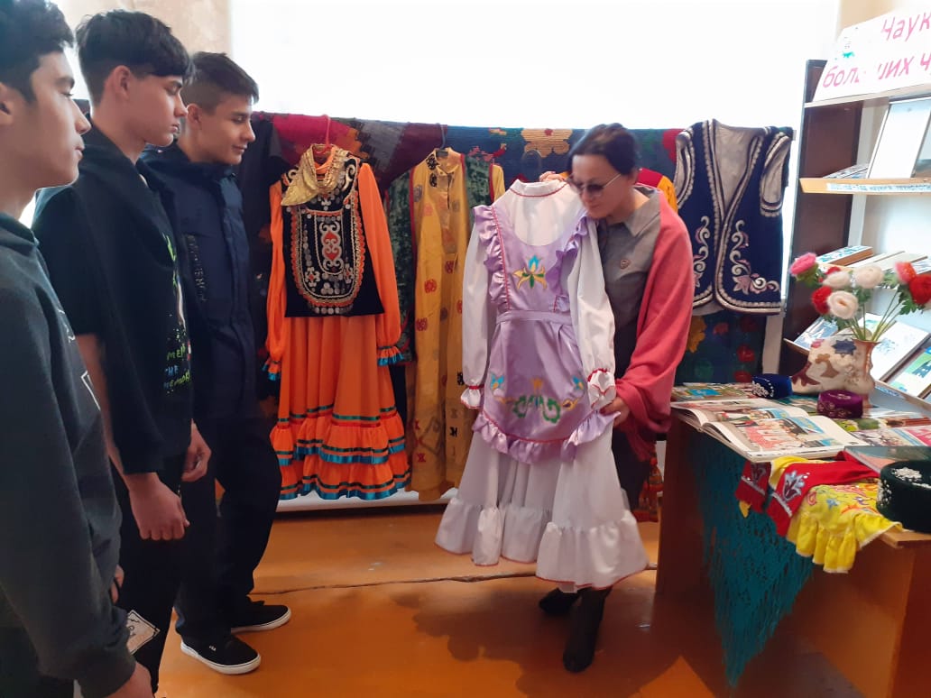 15 апреля 2022г. в рамках проведения мероприятий, посвященных празднованию Дня национального костюма народов Республики Башкортостан, учащиеся МОБУ СОШ д. Каинлыково приняли участие в акции «Я учусь в национальном костюме». Учитель башкирского языка и литературы Максютова З.М. и учитель татарского языка и литературы Шакирова З.Ф. провели уроки с использованием элементов национального костюма. Учащиеся изучали элементы костюмов, его характерные особенности; познакомились с историей появления национальных костюмов как одной из неотъемлемой части традиций народа.