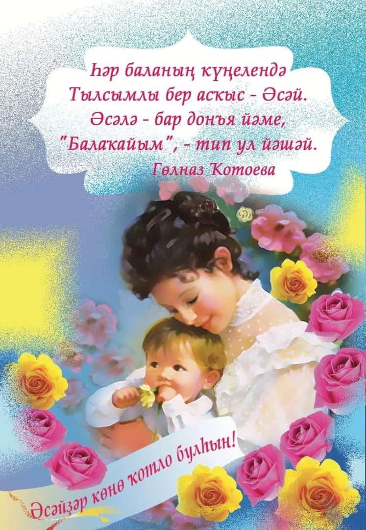 Әсәй! Был һүҙҙә күпме наҙ, йылылыҡ. Әсәй һәр бер кеше өсөн иң ҡәҙерле, иң һөйкөмлө зат ул. Ҡәҙерле әсәйҙәр ! Һеҙҙе ысын күңелдән байрам менән ҡотлап, сәләмәтлек, оҙон ғүмер, аяҙ күк йөҙө, эшегеҙҙә уңыштар, һаулыҡ, шатлыҡ, бәхет, ырыҫ-ҡот бер ҡасан да ташламаһын. Иңебеҙгә ҡанат ҡуйыусы, яҡлаусы, һаҡлаусы кешебеҙ булғас, беҙ үҙебеҙ ҙә ҡанатлы, тимәк, бәхетле. Байрамдар ҡотло, тормоштар бәхетле, донъялар имен булһын!